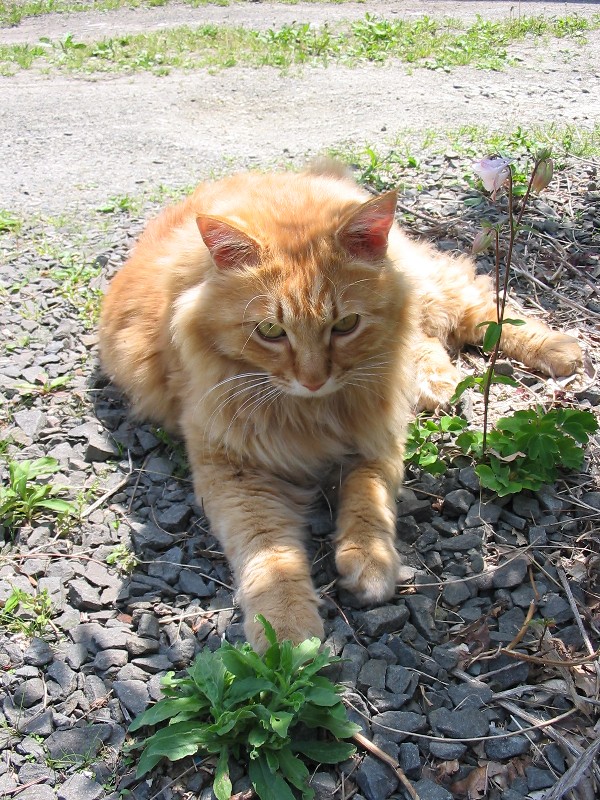●チャチャ丸・・・ノルウェージャン似の雑種、♂、6歳、7㎏、ダイ吉の息子、デカイ、賢い、お人良しお猫良し、我が家とご近所のアイドル、別名:茶色いタヌキ